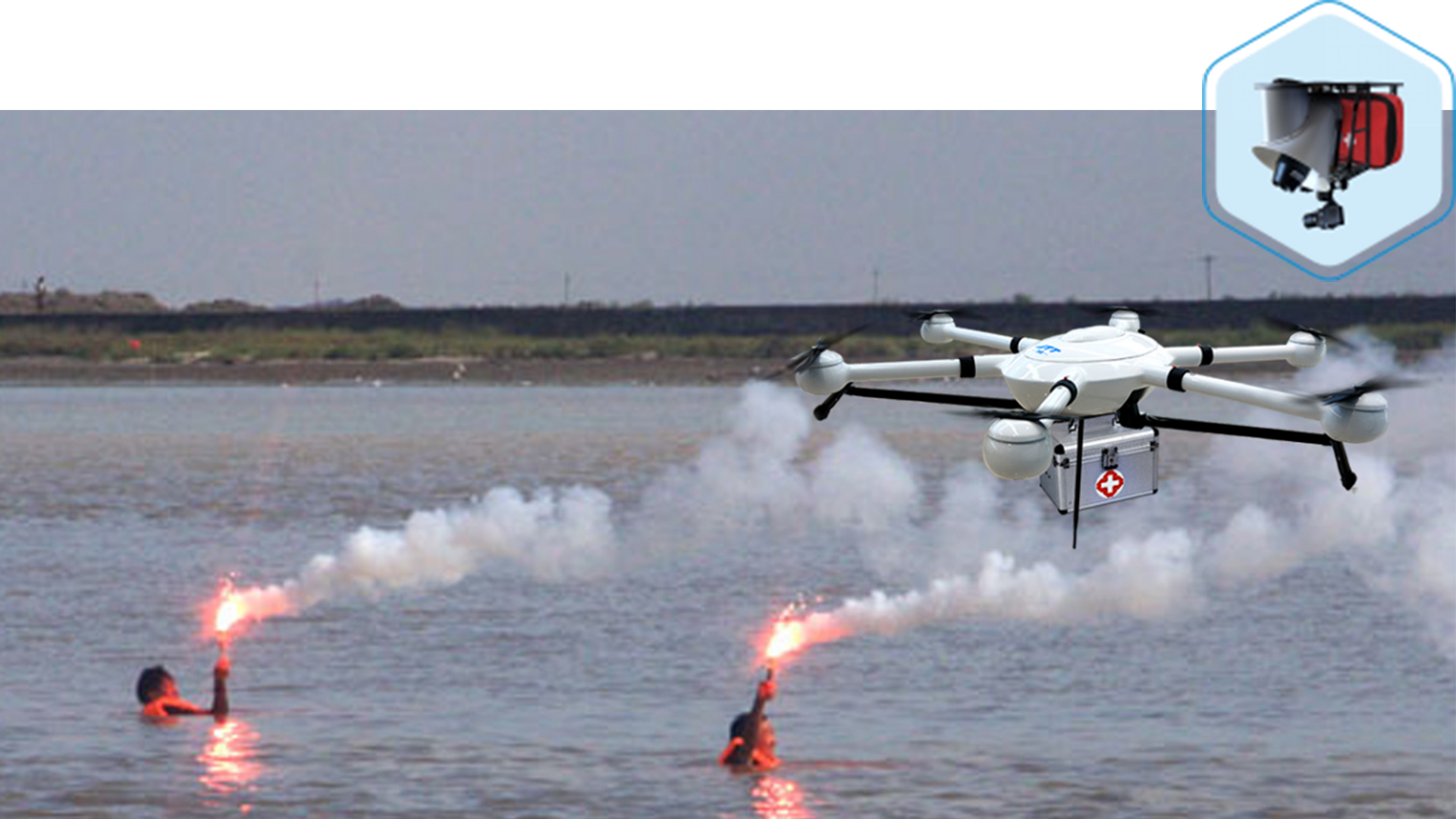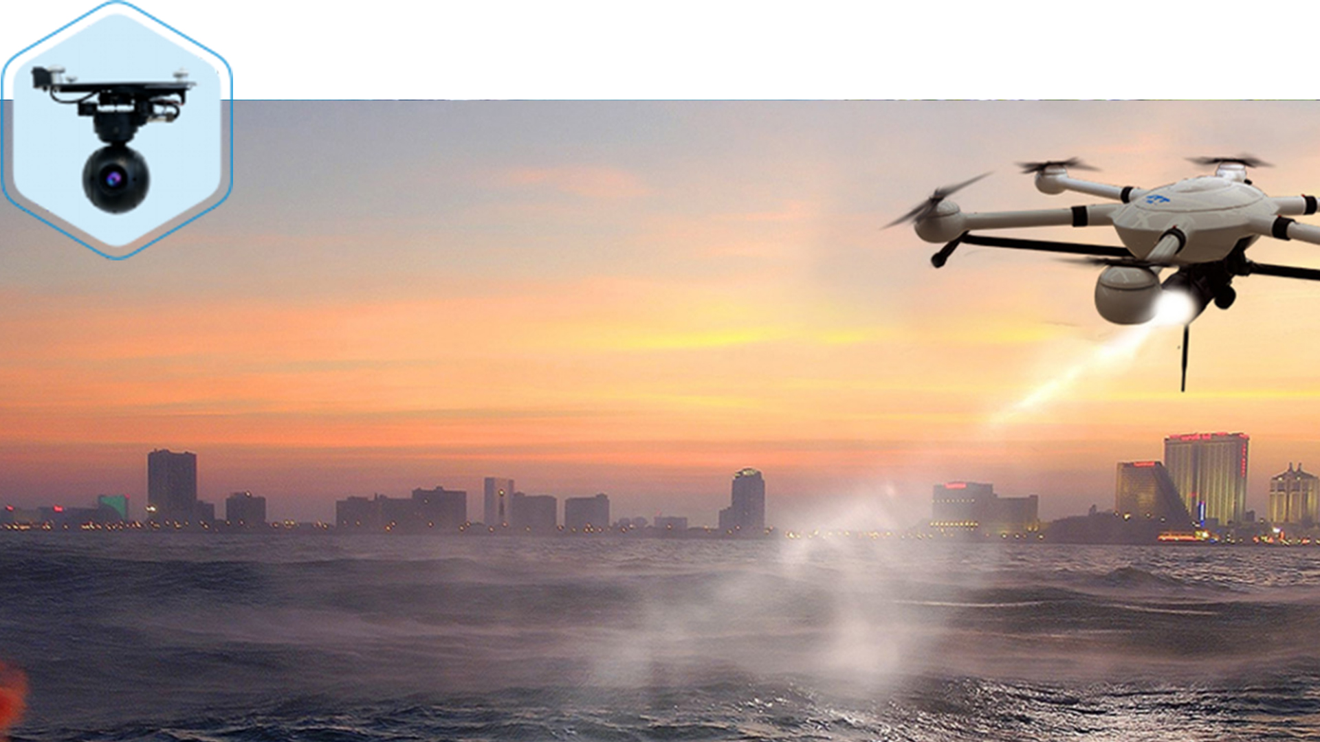 當(dāng)在海上遇到突發(fā)狀況時,無人機(jī)可搭載四合一掛載在事發(fā)高空盤旋監(jiān)控,實(shí)時傳送圖像信息至指揮中心,指揮中心可以對現(xiàn)場進(jìn)行指揮救援行動,并且可以空頭一系列救援物品給需要救助的人員。還可以通過四合一種的喇叭對現(xiàn)場需要救助人員進(jìn)行疏導(dǎo)和安慰。