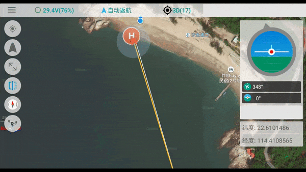 隨后可以打開遙控上的一鍵返航鍵,R1會自動回到出發(fā)地,不需其它操作,全程無人化運作