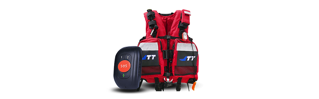 救援人員穿戴智能定位報警救生衣,在人員落水或人工觸發(fā)情況下,