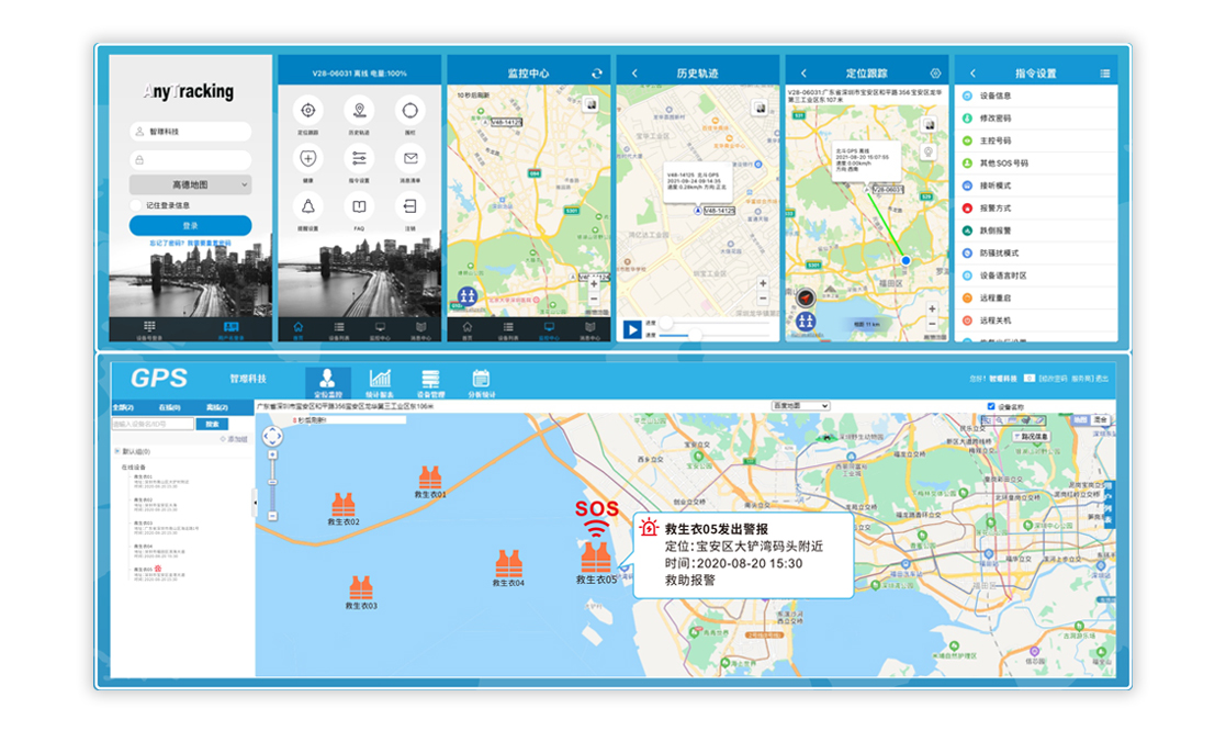 智能救生衣一鍵報警發(fā)送遇險人員的求救信號和坐標位置等相關信息給應急救援管理系統(tǒng),系統(tǒng)調度就近設備前往救援。
