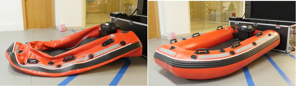一鍵自動(dòng)充氣,讓水上救援艇在洪水來(lái)臨之際,能夠迅速展開(kāi)行動(dòng)。當(dāng)災(zāi)情突發(fā),洪水肆虐,每一分鐘都可能關(guān)系到無(wú)數(shù)人的生命安全。水上救援艇的自動(dòng)充氣功能,在?壓的情況下也能夠?動(dòng)充?,確保了救援人員可以在最短時(shí)間內(nèi)投入行動(dòng),迅速抵達(dá)受災(zāi)地區(qū),為被困人員提供緊急救援。且艇身周邊配有示位燈能夠顯示救援艇位置。