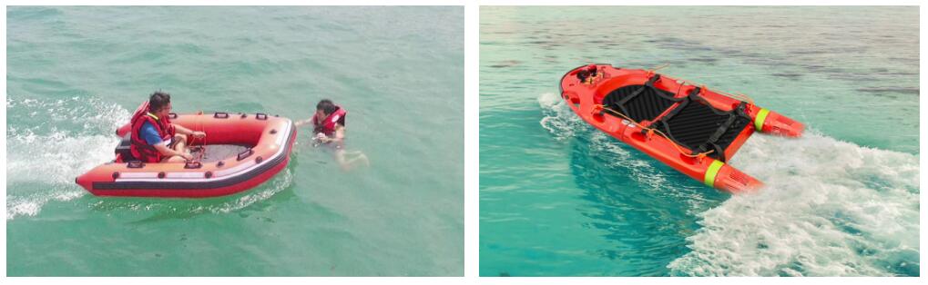(左)T1水上救援艇、(右)T3水上加溫擔(dān)架