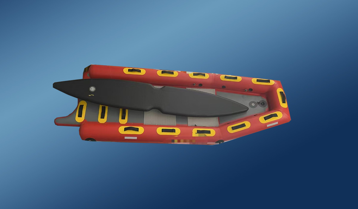 充氣底板尾端帶有5個橡膠把手;側(cè)邊帶有4個金屬連接環(huán);前端帶有1個金屬連接環(huán)